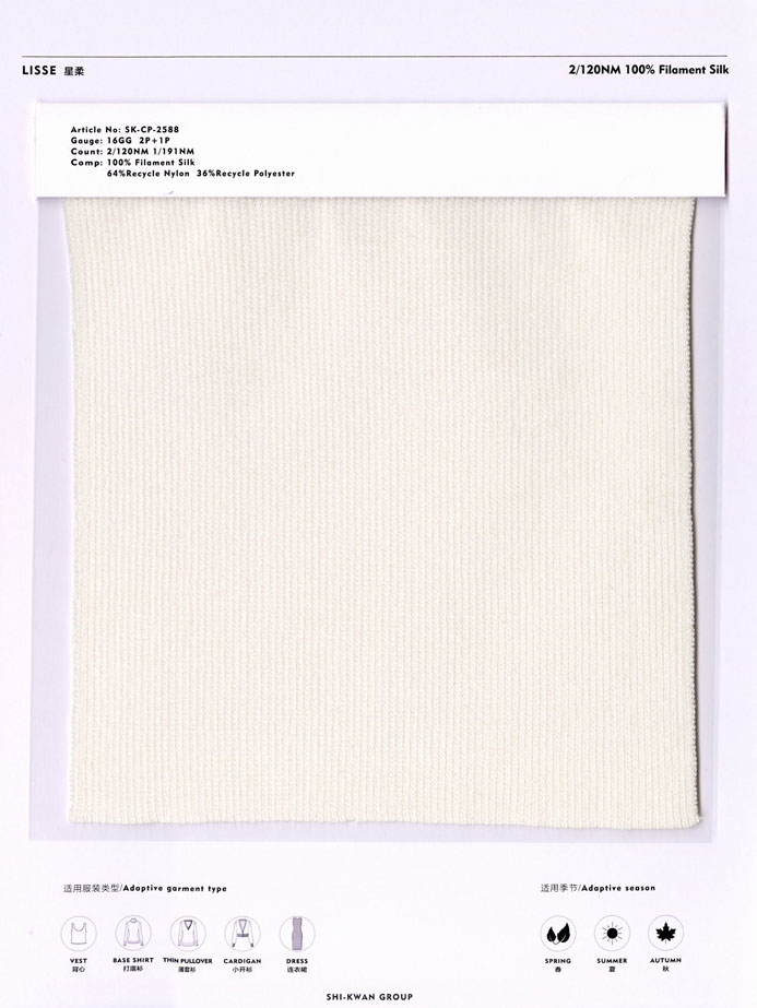 白厂丝是最高级的生丝,加上特别工艺研发,使其具有柔软滑爽、光泽柔和、吸湿性强等特性,它具有天然抗菌、抗紫外线、抗衰老、吸湿透气性强的诸多优良功能,能够吸收身体排出的汗水和新陈代谢物,对人体无刺激的同时,保持皮肤清洁。桑蚕丝面料中的多种氨基酸,更能提高身体细胞活力,防止血管硬化。白厂丝作为真丝之首,具有匹值万金的价值和工艺质量要求,长期穿着使肌肤与自然灵气相交融,身心舒畅,净化心灵。
