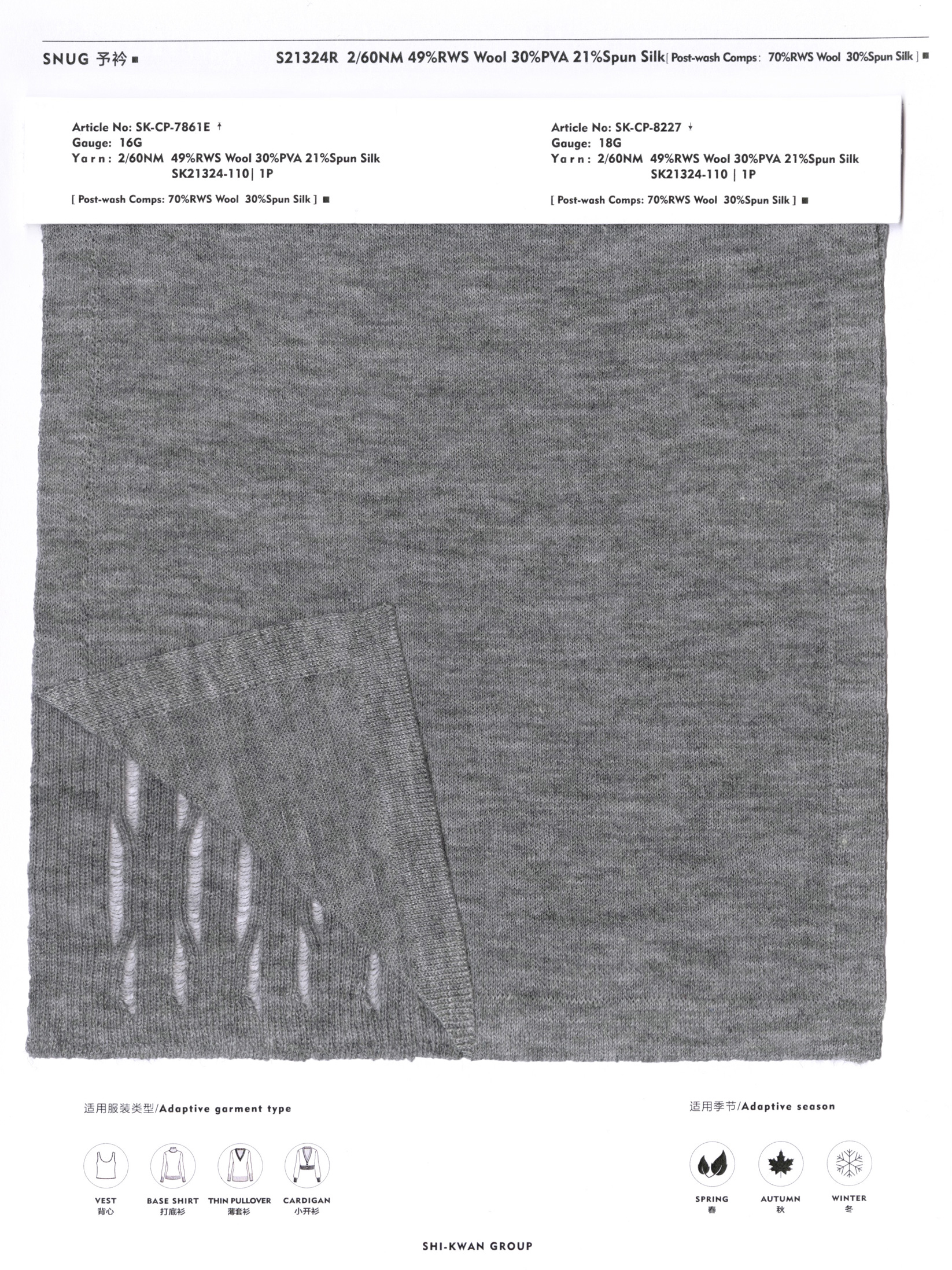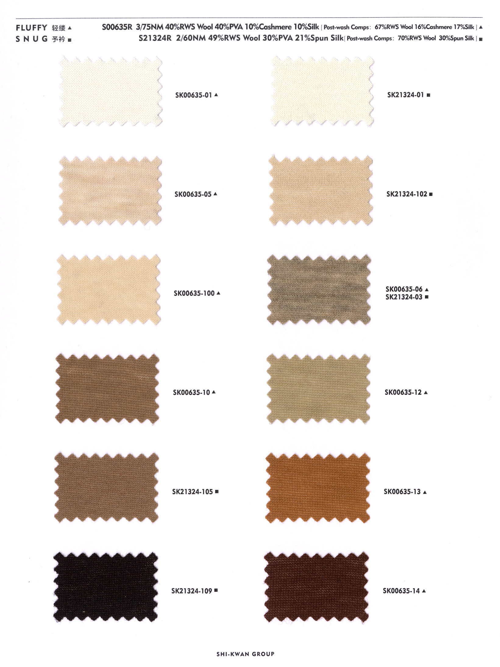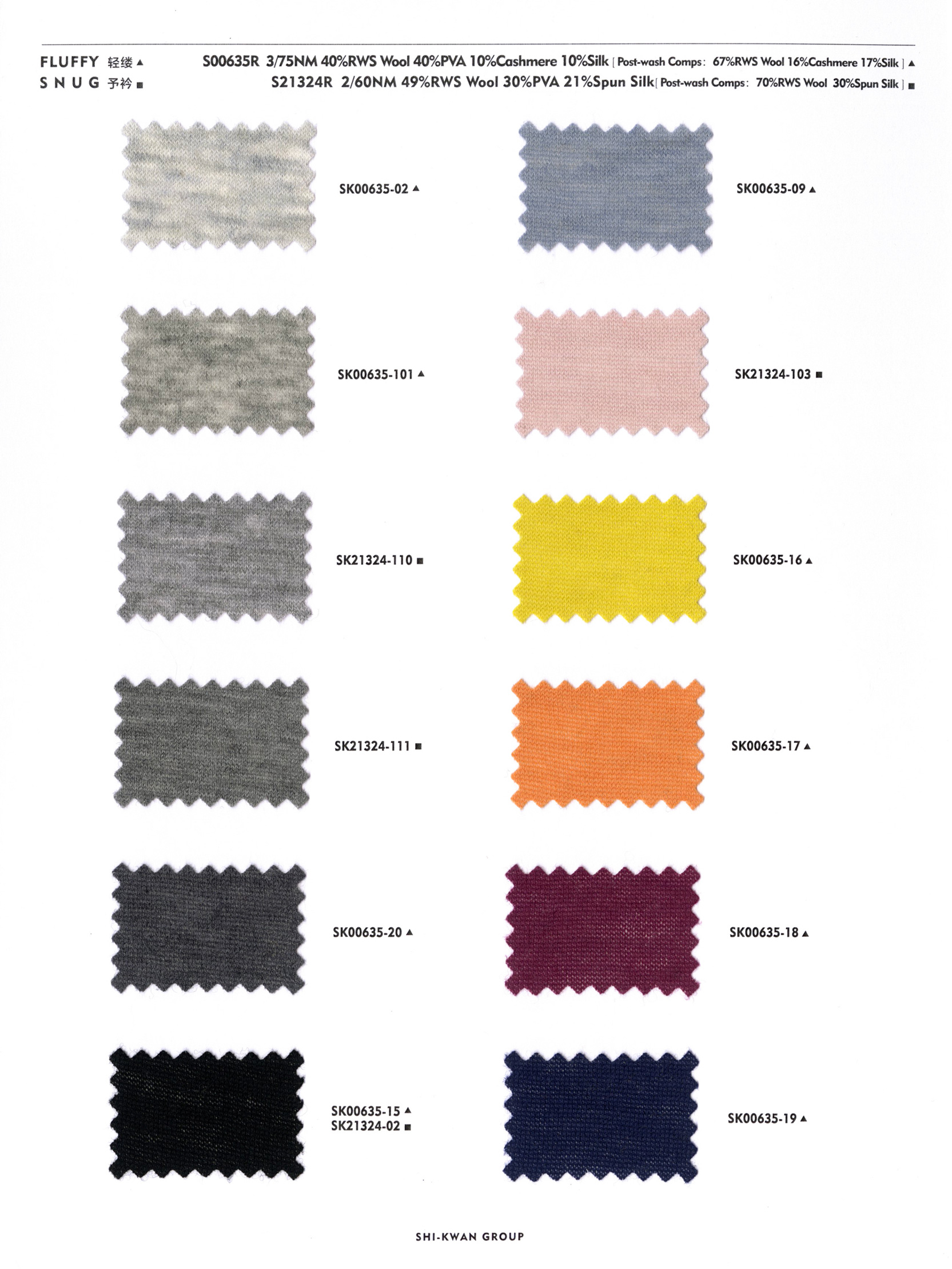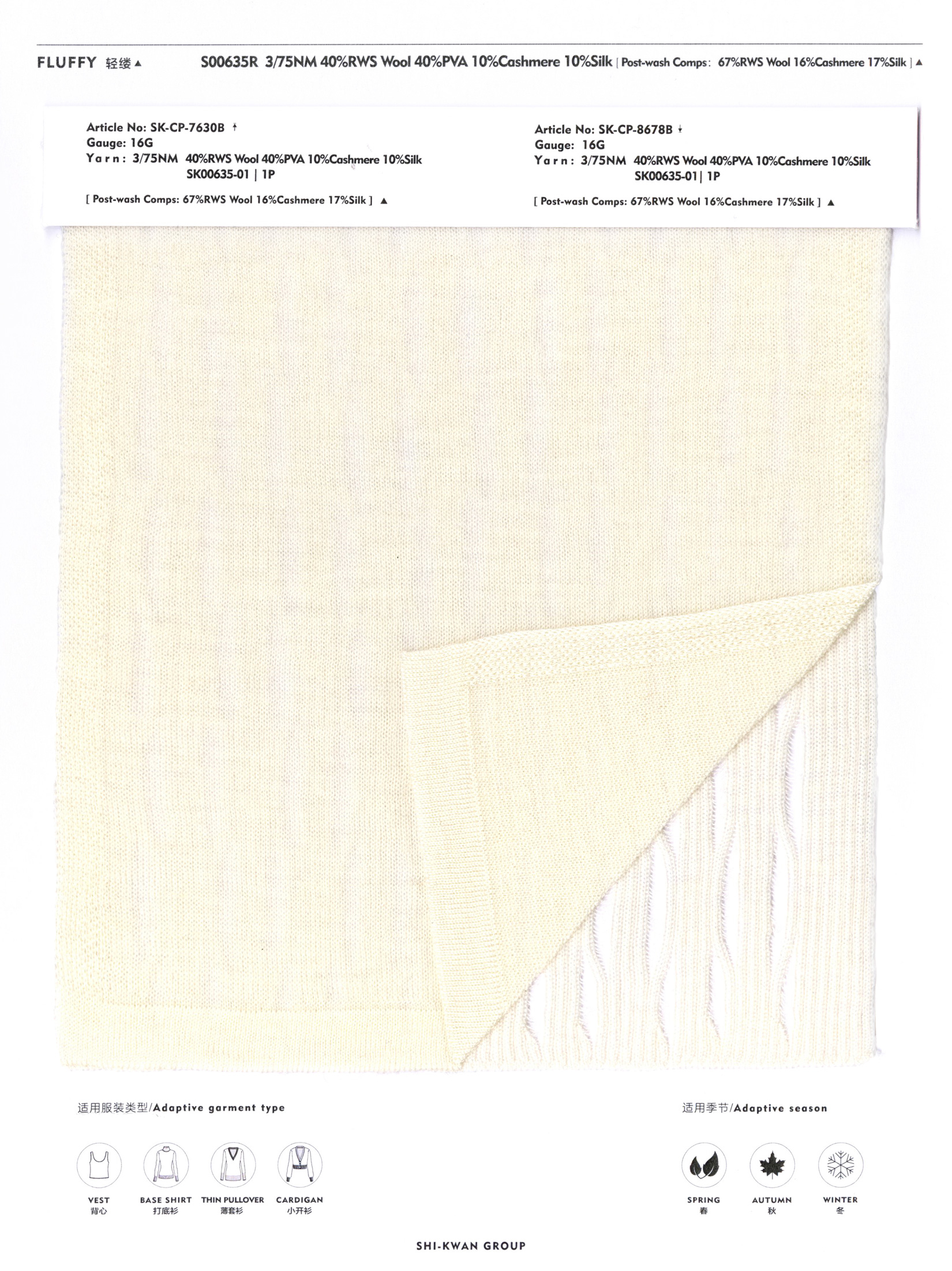 产品采用澳洲细支美利奴负责任羊毛,融合优质桑蚕丝与环保水溶性高分子聚合物PVA混纺而成。通过优化改进的特别纺纱工艺制作,使纱线呈现轻薄、细腻、柔滑、软糯的同时 ,具有蓬松感。 RWS责任羊毛与天然桑蚕丝及环保型PVA纤维均为可降解材料,不仅源于自然,也能回归自然,完美契合可持续发展的理念。超细的羊毛与桑蚕丝的结合,不仅提供了无与伦比的柔软感,还赋予了织物优雅的光泽和优良的悬垂性,展现出高端的奢华气质。 洗涤水溶后,织物保持轻盈蓬松、柔软舒适贴肤,温暖而富有弹性。其轻盈精细的布面和柔顺的触感,仿若云朵般轻抚过肌肤,提供了极致的穿着体验。